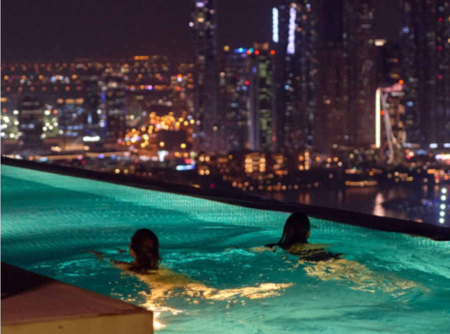 Relax high above the city at AURA Skypool. Enjoy breathtaking evening views of Dubai’s Marina with a serene swim in the world’s highest infinity pool.