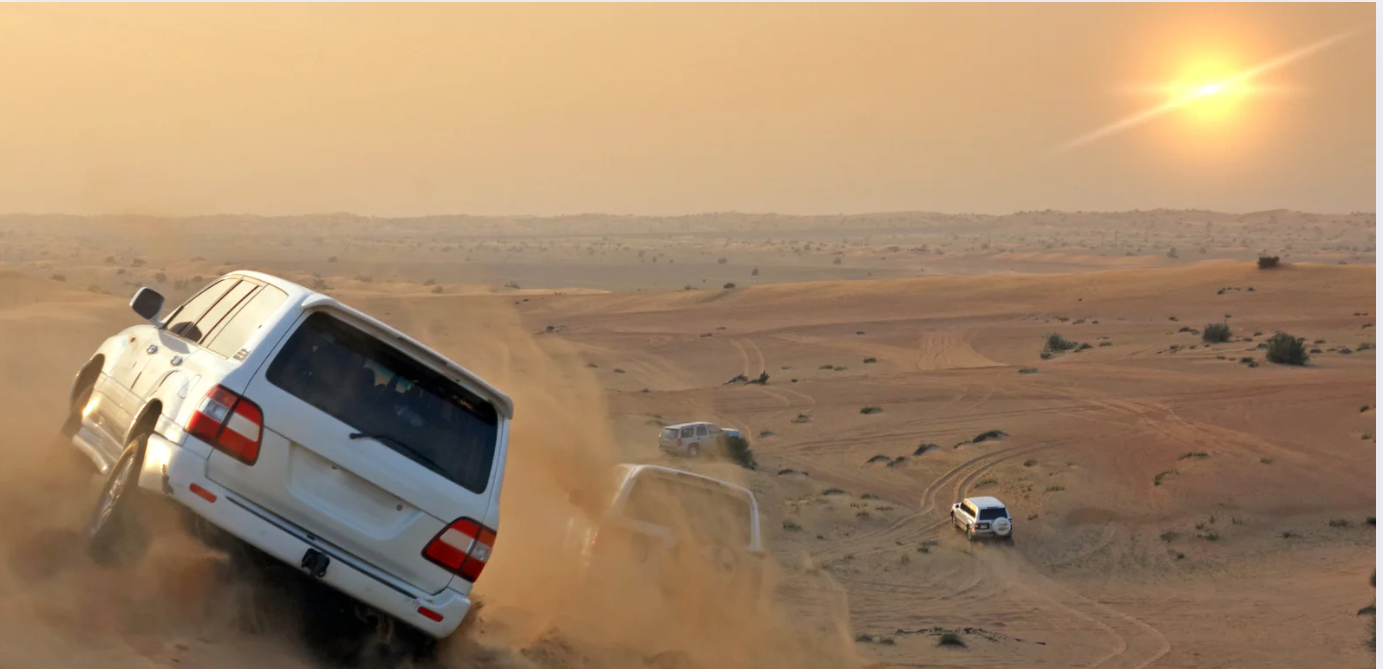 This desert safari includes pickup and drop-off in 4×4 cars from your hotel or home, with pickup around 2 p.m. and drop-off around 10 p.m. Enjoy dune bashing, sandboarding, camel riding, and henna painting. Relax with Arabic coffee, soft drinks, shared shisha, and a buffet dinner with BBQ. Watch 5 live shows like belly dance, fire show, and more. It’s a fun and cultural evening in the Dubai desert.