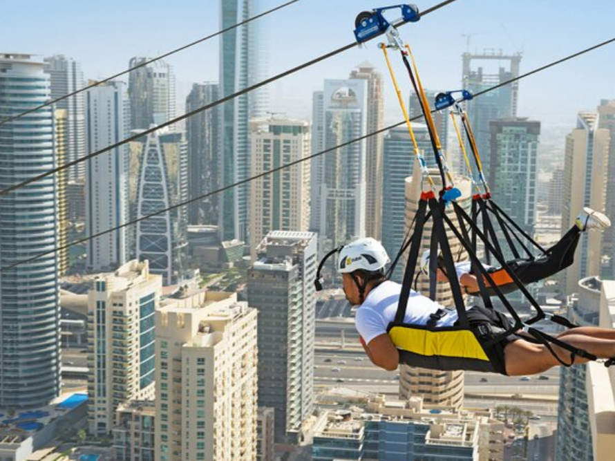 Experience the world’s longest urban zipline at Dubai Marina. Fly solo over skyscrapers and waterfront for an adrenaline-packed ride.